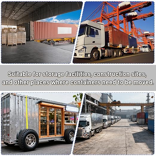 - Wide Application: The container moving wheel kit is designed to securely and stably connect containers, adapt to various ground conditions and ensure smooth and efficient transportation. Suitable for storage facilities, construction sites, and other places where containers need to be moved