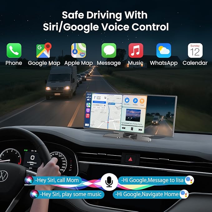 - 【Intelligent Voice Control and Navigation】Car stereo carplay features intelligent voice control via Siri and Google systems. Without touching the screen, you can easily make/receive phone calls, listen to music and enjoy hands-free operation of various functions with a single voice command, adding safety to your driving. By connecting to a-pple carplay wireless screen you can access online maps on your phone and navigate, choosing the smartest and most convenient routes to avoid traffic jams.