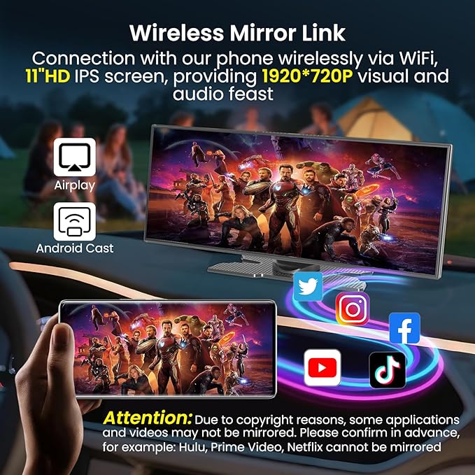 - 【Loop Recording & Mirror Link】The wireless car screen supports loop recording, ensuring continuous capture of new footage. With a huge 64GB of storage space, guaranteeing that no crucial moments are missed.The wireless CarPlay screen supports wireless mirroring for both Android and iOS devices. Use Mirror Link to display your smartphone screen on the 11.5 inch wireless CarPlay, giving you access to apps, media, and more while driving.