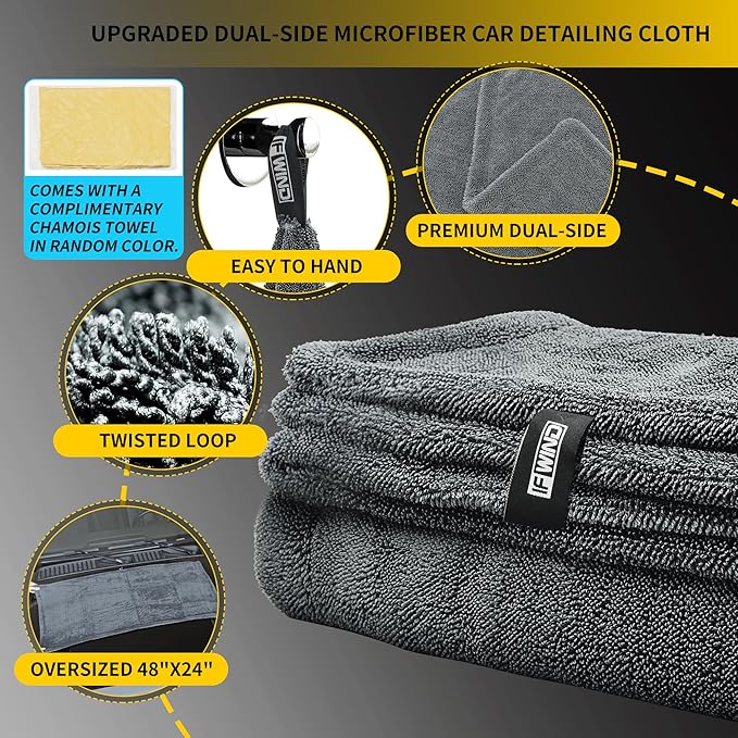- LARGE SIZE: Premium car drying towel measures 48 x 24 inches, providing extensive coverage for efficient vehicle cleaning and drying,car wash microfiber towel,drying towels car detailing