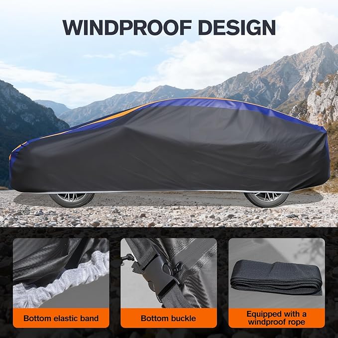 - All-weather Protection: The car cover can protect your car in four seasons: UV rays, leaves, dirt, dust, scratches, snow, rain, industrial pollutants, and bird droppings. Whether it's hot sun or cold weather. Our complete set of external car covers can handle all of this