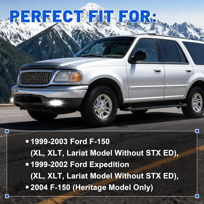 - Perfect Fit & Direct Replacement - Specifically designed for 1999-2003 Ford F-150 (XL, XLT, Lariat Model Without STX ED),1999-2002 Ford Expedition (XL, XLT, Lariat Model Without STX ED),2004 F-150 (Heritage Model Only). Easy plug-and-play installation with OEM-compatible housing and connectors, no wiring modifications required