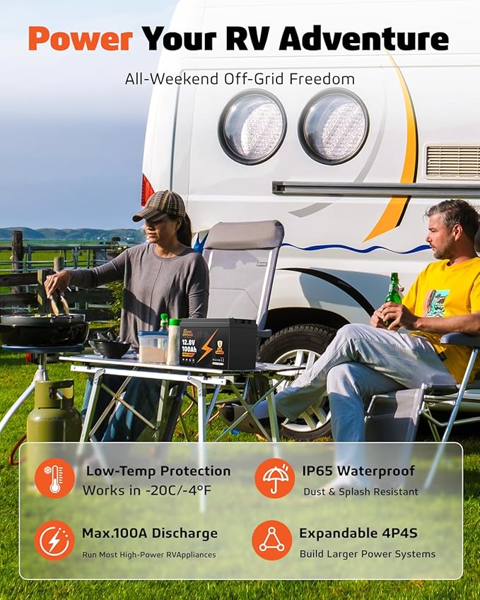 12V 100Ah LiFePO4 Lithium Battery- BCI Group 27, Deep Cycle RV LiFePO4 Battery with Low-Temp Protection, 100A BMS, 1280Wh, Max.15000 Cycles, 10-Year Lifespan for RV, Solar, Trolling Motor, Marine