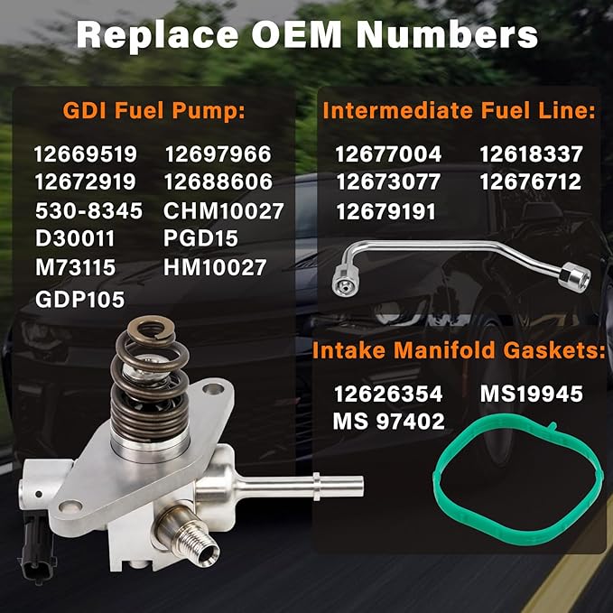 - GDI Fuel Pump Fitment: Compatible with Chevy: For 2014-2019 Silverado 1500/Corvette | For 2015-2020 Tahoe/Suburban | For 2016-2018 Camaro | For 2018-2020 Express 2500/3500 | Compatible with GMC: For 2014-2019 Sierra 1500 | For 2015-2020 Yukon/Yukon XL | For 2018-2020 Savana 2500/3500 | Compatible with 2015-2018 Cadillac Escalade | Replace OEM Numbers: 12669519, 12697966, 12672919, 12688606, 530-8345