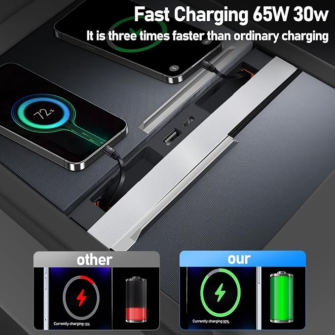 - Designed specifically for Tesla: This charge dock is tailored for model y juniper and model 3 highland, ensuring that the color and size perfectly match the interior decoration of the car, just like an original factory design, and only occupies a small portion of storage space