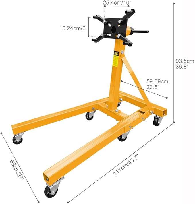 - Easy to Move: the engine stand is equipped with 6 wheels, offers easy mobility and maneuverability. The casters allow for smooth and effortless movement around your workshop.