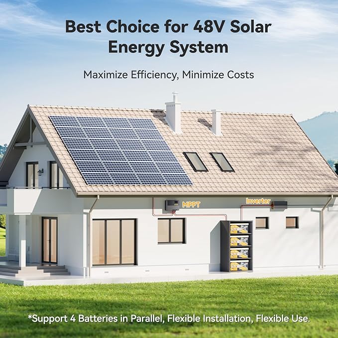 - ⚡【Adaptable for Every Energy Need】 Power Queen 48V 100Ah LiFePO4 lithium battery was originally designed to be used as golf cart battery, but with the upgraded 200A BMS and 4-parallel configuration delivers 20.48 kWh capacity, this 48V 100Ah LiFePO4 lithium battery is also suitable for electric outboard motor. lawnmowers, home energy storage, and Off-Grid application.